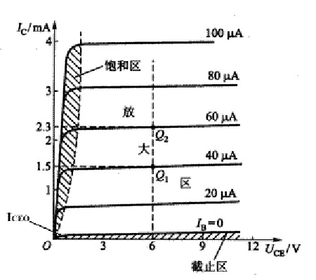 $i_c=f(u_{CE})$ $i_B=常数$